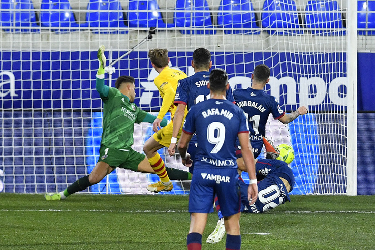 A katalánok Frenkie de Jong találatával nyertek a Huesca otthonában.